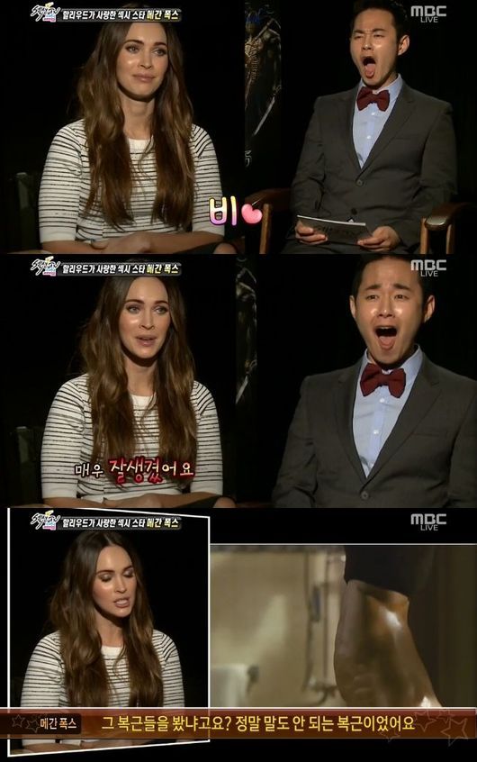 메간 폭스는 17일 오후 방송된 MBC '섹션TV 연예통신'(이하 '섹션')에서 이상형을 묻는 질문에 대해 "레인(비)이다"라고 답했다.