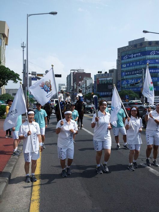 이날 성화는 제주도청에서부터 탐라개벽 신화가 깃든 삼성혈까지 16구간 총 4.8㎞를 달렸다. 성화봉송 주자는 지난 6월 공개 모집을 통해 선발된 주자와 조직위 선정 주자 등 모두 72명이다.