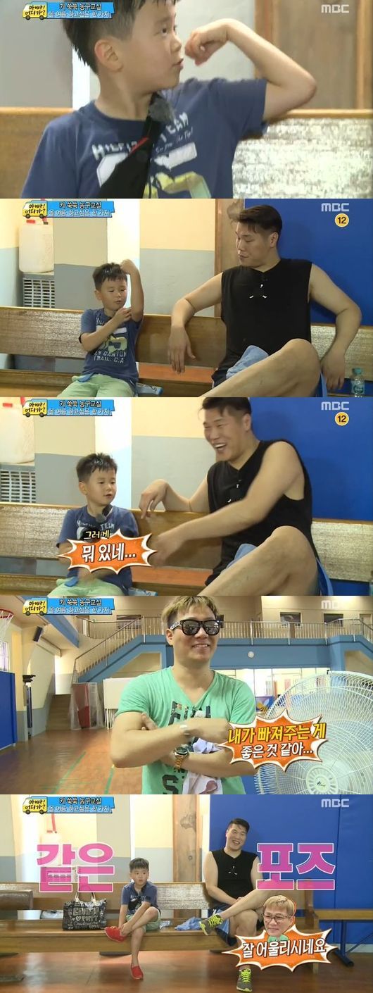 서장훈은 17일 오후 방송된 MBC 예능프로그램 '일밤-아빠!어디가?'(이하 '아빠어디가')에서 후와 민율에게 농구를 가르쳐줬다.