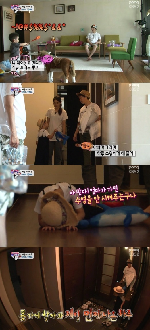 특히 하루는 타블로에게 "엄마는 왜 안 데려가요?"라고 물으며 떼를 썼지만, "수영 시켜줄게"라는 말에 흔들렸다.