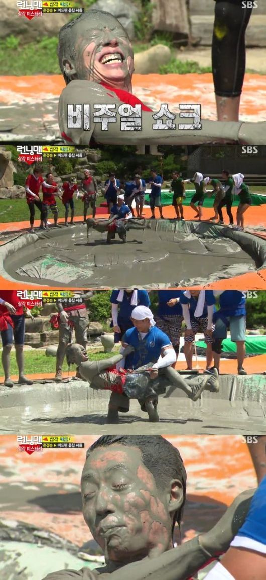 그러자 유재석은 "너 내가 가만히 안 놔둔다"며 김종국에게 엄포를 놨지만, 김종국은 그런 유재석의 얼굴까지 머드에 담가 모두를 폭소케했다.