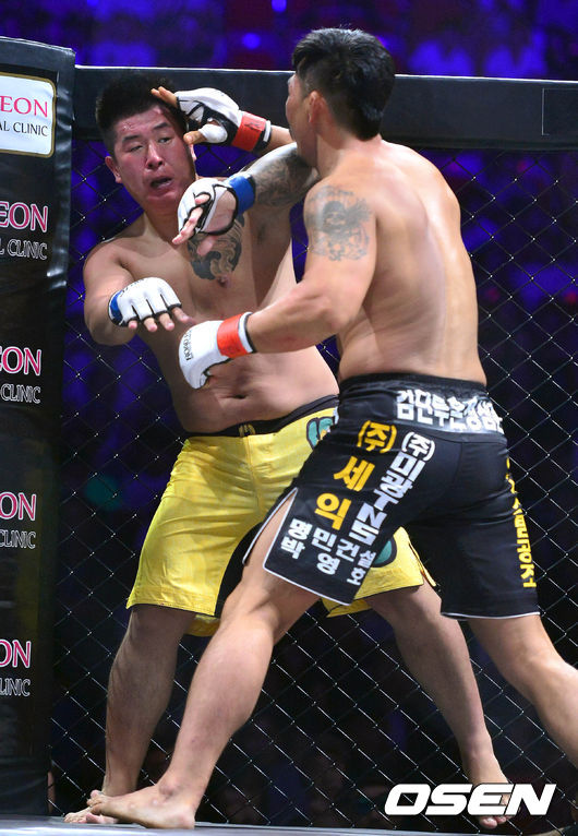 17일 밤 서울 올림픽공원 올림픽 홀에서 벌어진 ‘로드FC 017’ 김대성-박정교가 불꽃튀는 타격전을 벌이고 있다.