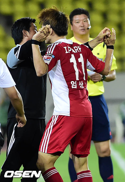 후반 83분 부산 임상협이 골을 성공시키고 윤성효 감독과 포옹을 나누고 있다.