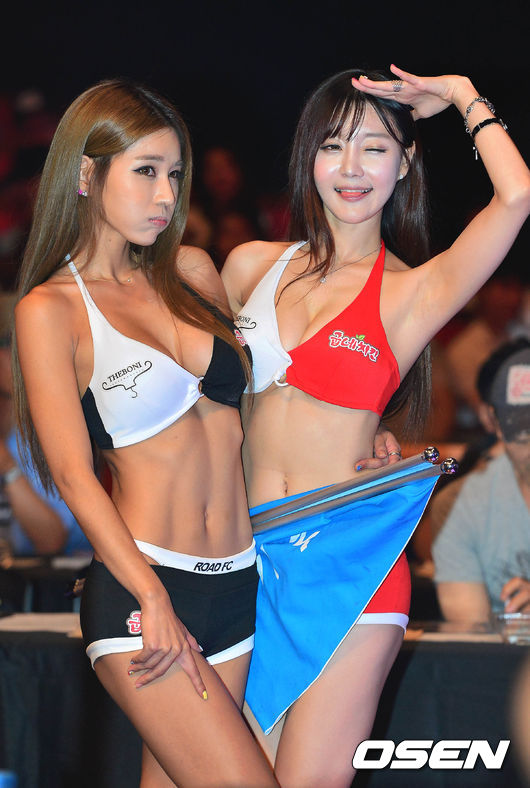 17일 밤 서울 올림픽공원 올림픽 홀에서 벌어진 ‘로드FC 017’ 로드걸 박시현 최슬기가 포즈를 취하고 있다.
