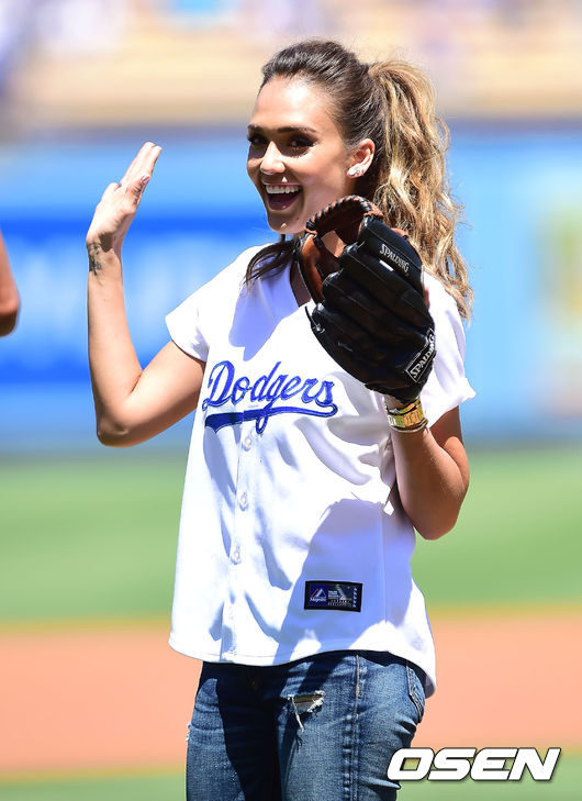 제시카 알바,'다저스타디움을 밝히는 아름다운 미소'