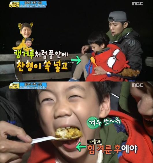 류진과 임찬형 부자는 17일 오후 방송된 MBC 예능프로그램 '일밤-아빠!어디가?'(이하 '아빠어디가')에서 백운산 정상에 올라가 비박을 시도했어요. 무더웠던 낮이 지나가고, 밤이 오자 아빠 류진은 주섬주섬 준비해 온 식사를 꺼내기 시작했죠. 아들 찬형이에게 따뜻한 저녁밥을 먹이고 싶었기에 특별히 ‘발열팩’이 함께 동봉돼 있는 카레를 사 왔습니다.