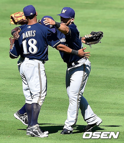 승리를 거둔 밀워키 선수들이 기뻐하고 있다./youngrae@osen.co.kr