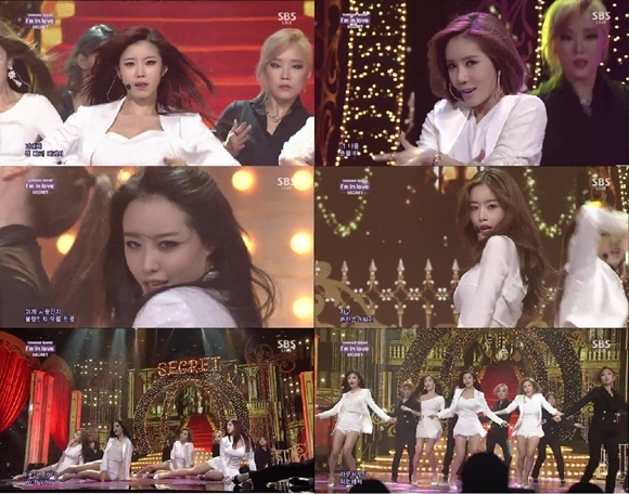 약 8개월 만의 완전체 활동과 컴백 전 대대적인 프로모션으로 화제의 중심에 서있던 시크릿의 타이틀곡 '아임 인 러브' 무대는 지난 15일 KBS 2TV '뮤직뱅크'를 시작으로 MBC '쇼! 음악중심', SBS '인기가요'에서 차례로 베일을 벗었다.