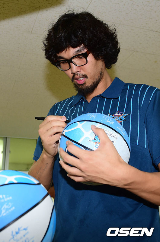 18일 오전 전북 전주시 전일고등학교에서 열린 'Kappa & KCC 농구단과 함께 학교 폭력 추방 캠페인' 행사에서 하승진이 학생들에게 사인을 해주고 있다.