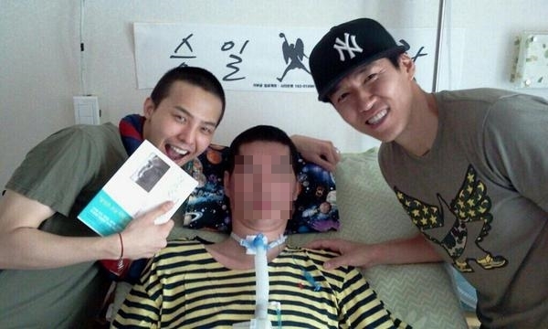 공개된 사진 속에 지드래곤은 머리를 삭발한 새로운 헤어스타일를 선보이며 환하게 웃고 있다. 특히 그의 옆에는 루게릭병을 앓고 있는 전 프로농구 코치 박승일과 승일희망재단의 션의 모습도 함께 보인다.