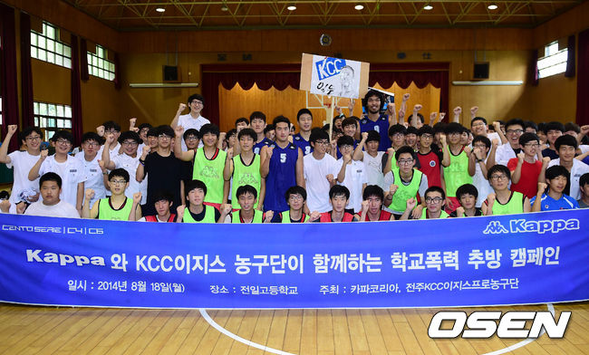 전주 KCC 프로농구단과 공식 용품사인 카파코리아는 이날 전일고등학교에서 학교 폭력 추방 캠페인을 실시했다.