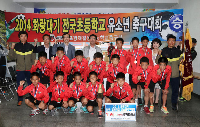 포항스틸러스 U-12(포철동초) 팀이 2014 화랑대기 전국 유소년 축구대회 우승컵을 들어 올렸다.