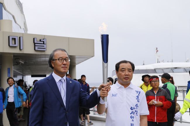 이날 오전 성화는 울릉도로 향하는 성화와 오후 포항운화관을 출발해 영일대 해상누각까지 가는 성화로 나눠졌다. 성화는 울릉도에서 약 1시간의 봉송을 끝내고 다시 여객선을 이용 포항 영일대해수욕장에 안전하게 도착했다.