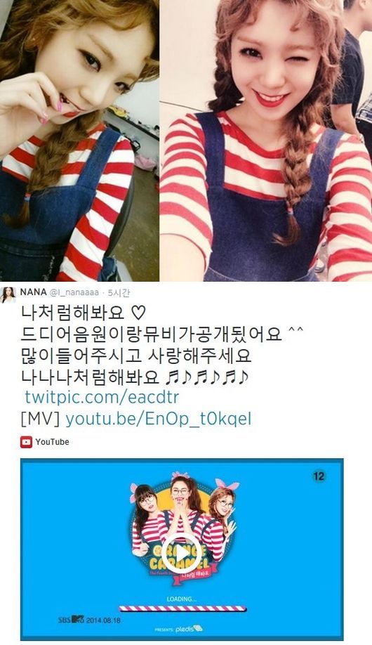 리지와 나나는 18일 자신의 트위터를 통해 신곡 '나처럼 해봐요'를 홍보했다.