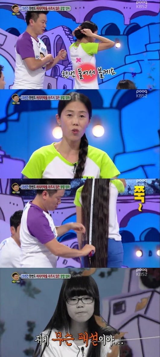 18일 첫 방송된 KBS 2TV 예능프로그램 '대국민 토크쇼 안녕하세요'에서는 23년간 한번도 머리카락을 자르지 않은 장발 엄마가 고민인 딸이 등장했다.