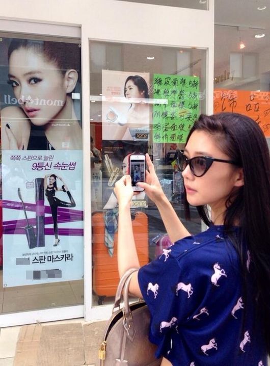 공개된 사진 속 클라라는 화장품 가게에 붙은 자신의 포스터를 찍고 있다. 특히 다른 곳을 응시하며 자신의 사진을 찍는 모습으로 웃음을 자아냈다.
