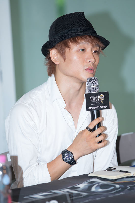19일 서울 마포구 상암동 CJ E&M 센터에서 열린 Mnet '댄싱9 시즌2' 우승팀 공동인터뷰에는 안준영 PD를 비롯해 블루아이 멤버 김기수, 김설진(MVP), 김태현, 박인수, 안남근, 윤전일(캡틴), 이지은, 임샛볏, 최남미가 참석했다.