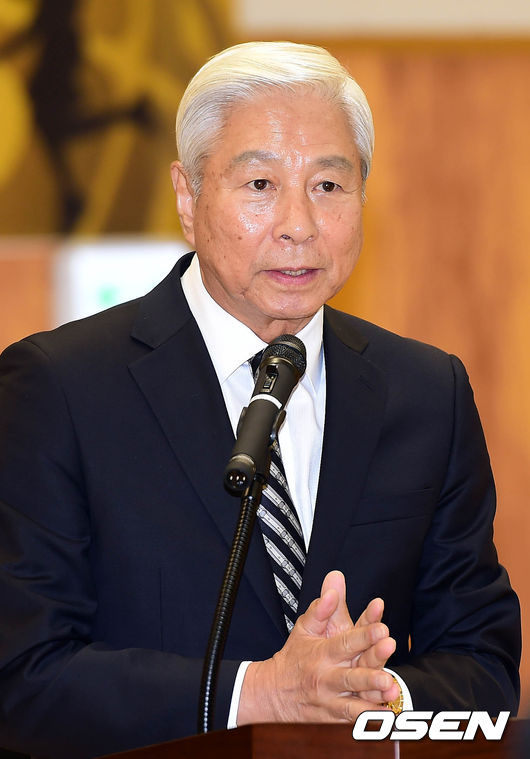 19일 오후 충북 진천군 진천선수촌에서 열린 2014 FIBA 농구월드컵 국가대표 선수단 결단식에서 방열 대한농구협회장이 인사말을 하고 있다.
