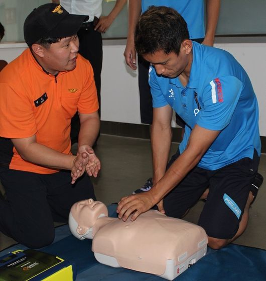 심폐소생술 체험을 한 방대종은 “심정지는 경기중 선수들에게 언제든지 발생할 수 있다. 심정지에 대처할 수 있는 심폐소생술을 직접 체험해 볼 수 있어 많은 흥미를 가지고 교육에 임하였고 일상 생활이나 경기장에서 실제 심정지 환자가 발생하더라도 소방대원이 알려준 대로 할 수 있을 것 같다”고 교육 소감을 말했다.