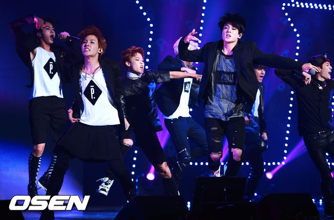 19일 오후 서울 한남동 블루스퀘어 삼성카드홀에서 진행된 방탄소년단 신곡 '데인저' 쇼케이스에서 그룹 방탄소년단이 멋진 무대를 펼치고 있다