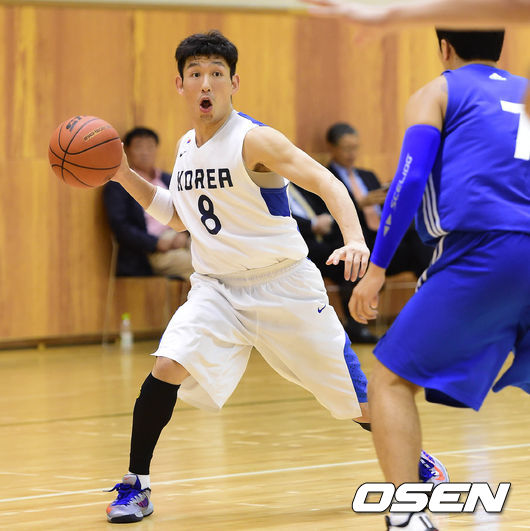 19일 오후 충북 진천군 진천선수촌에서 열린 남자농구대표팀과 서울 삼성의 경기, 양동근이 패스를 시도하고 있다.