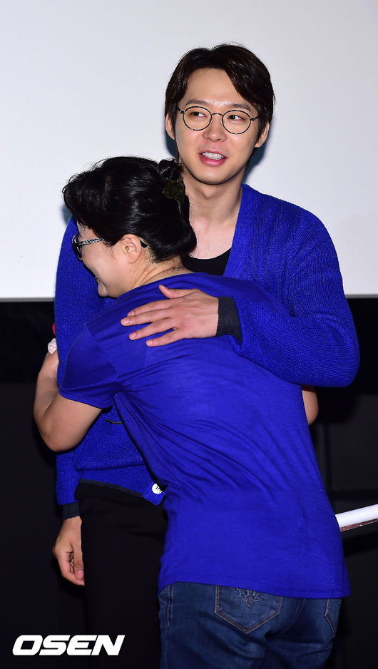 19일 오후 서울 동대문 메가박스에서 열린 영화 '해무' 무대인사행사, 박유천이 팬과 포옹을 하고 있다.