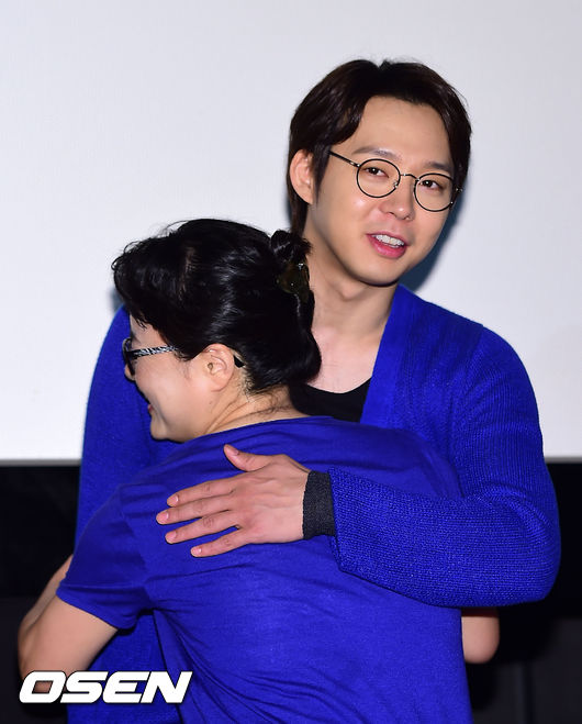 19일 오후 서울 동대문 메가박스에서 열린 영화 '해무' 무대인사행사, 박유천이 팬과 포옹을 하고 있다.