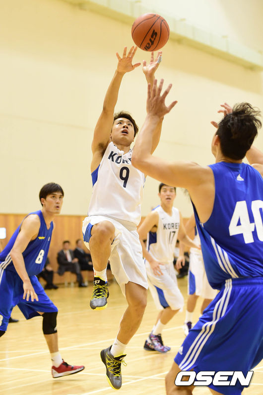 19일 오후 충북 진천군 진천선수촌에서 열린 남자농구대표팀과 서울 삼성의 경기, 김태술이 슛을 시도하고 있다.