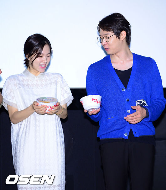 19일 오후 서울 동대문 메가박스에서 열린 영화 '해무' 무대인사행사, 박유천이 한예리와 얘기를 나누고 있다.