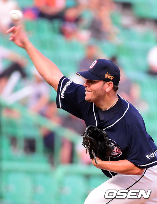 19일 오후 인천 문학야구장에서 열린 '2014 한국야쿠르트 세븐 프로야구' SK 와이번스와 두산 베어스의 경기, 1회말 두산 마야가 역투하고 있다.