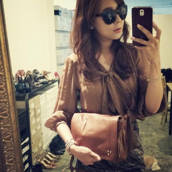 공개된 사진 속 소유진은 거울 속에 비친 자신의 모습을 찍고 있다. 특히 브라운톤 헤어부터 블라우스, 가방까지 가을 분위기를 물씬 내 눈길을 끌었다.