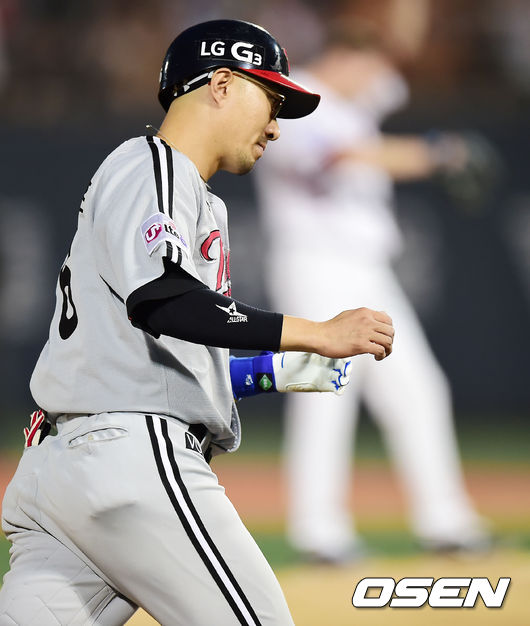19일 오후 서울 목동 야구장에서 열린 '2014 한국야쿠르트 세븐 프로야구' 넥센 히어로즈와 LG 트윈스의 경기, LG 트윈스 내야수 정성훈이 시즌 11호 홈런을 때려냈다.