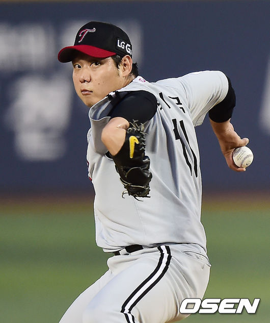 19일 오후 서울 목동 야구장에서 열린 '2014 한국야쿠르트 세븐 프로야구' 넥센 히어로즈와 LG 트윈스의 경기, LG 선발 류제국이 힘차게 공을 뿌리고 있다.
