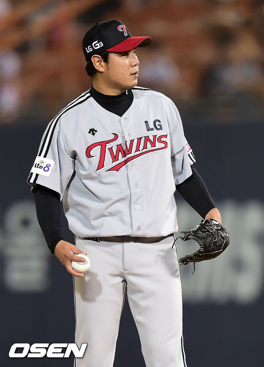 19일 오후 서울 목동 야구장에서 열린 '2014 한국야쿠르트 세븐 프로야구' 넥센 히어로즈와 LG 트윈스의 경기, 3회말 2사 주자 1,3루 LG 문우람 타석때 LG 선발 류제국이 와일드피칭으로 1점을 내준 후 아쉬워하고 있다.
