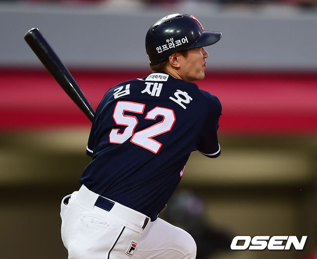 김재호는 19일 문학구장에서 열린 SK와의 경기에서 1-1로 맞선 5회 선두타자로 나서 상대 선발 밴와트를 상대로 좌측 담장을 살짝 넘기는 솔로홈런을 쳤다. 올 시즌 자신의 첫 홈런이다.