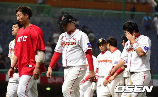 경기후 SK 선수들이 패배를 아쉬워하고 있다./ jpnews@osen.co.k