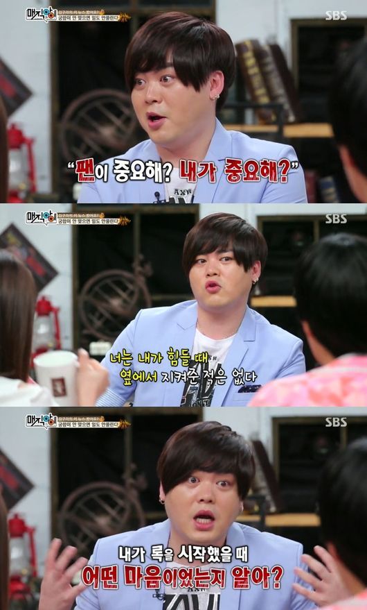 이어 "나한테 팬이 중요하냐 내가 중요하냐고 했다. 유치한데 중요한 질문이다. 그래서 나는 헤어지자고 했다"며 "그때 여자친구에게 너는 내가 힘들 때 옆에서 지켜준 적은 없다. 내가 록을 시작했을 때 어떤 마음이었는지 아냐고 했다"고 전했다.