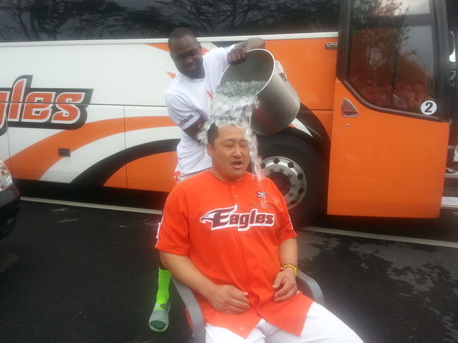 한화 조인성은 19일 울산구장에서 벌어진 롯데 자이언츠전 선발포수로 출전이 예정되어 있었다. 그렇지만 기쁜 마음으로 뜻깊은 행사에 동참했다. 경기 시작 30분을 앞두고 울산 문수구장 주차장에서 행사를 가졌는데, 얼음물은 동료선수인 펠릭스 피에가 뿌려줬다. 찬물을 뒤집어 썼지만 조인성은 100달러 역시 기부하기로 했다.