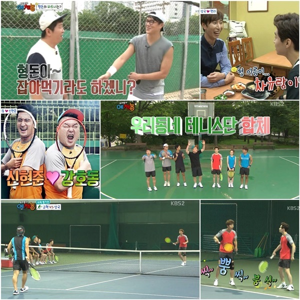 지난 19일 방송된 '우리동네 예체능'에서는 7번째 종목인 테니스 편이 시작됐다. 이날 강호동, 정형돈, 이규혁, 양상국이 자신들의 테니스 파트너를 찾아가는 이야기가 그려졌다.