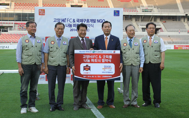 고양 Hi FC(이하 고양)가 지난 16일 고양종합운동장에서 열린 현대오일뱅크 K리그 챌린지 22라운드 강원FC전에 앞서 국제개발 NGO 단체인 ‘굿피플’과 업무 협약식을 체결했다.
