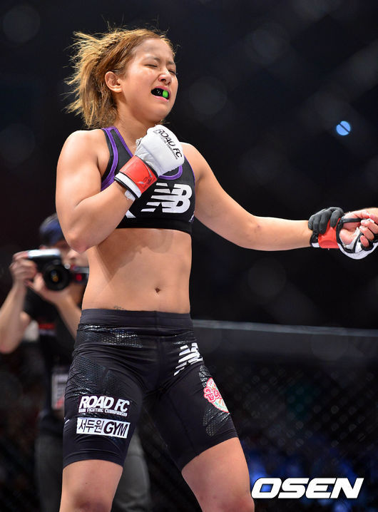경기 후 송가연은 "진짜 신난다"며 환호성을 내지르며 기쁨을 감추지 않았다. 이어 "경기를 준비하면서 한 번도 힘들고 짜증이 난 적이 없었다. 내가 즐길 수 있었기 때문에 다른 사람들이 부담을 주는 것을 신경 쓸 수 없었다"고 승리 소감을 밝혔다. / rumi@osen.co.kr