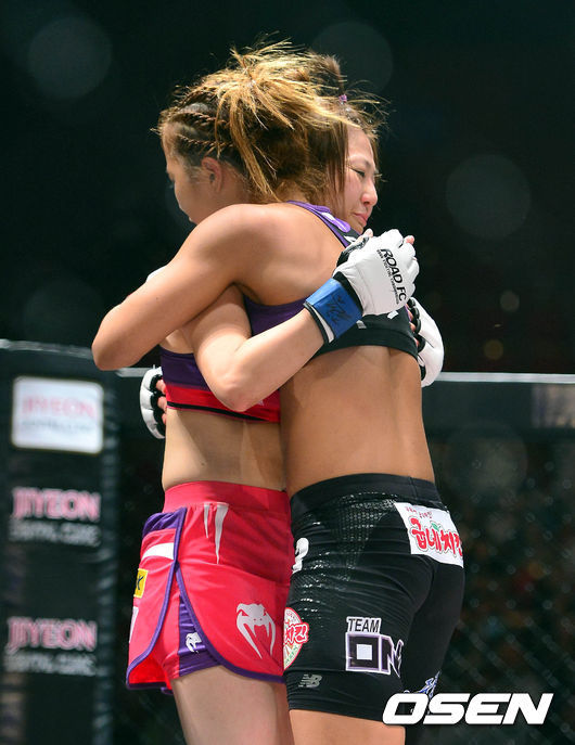 한편 일본의 에미 야마모토(33)와 맞붙는 미녀 파이터 송가연(21.TEAM ONE)의 데뷔전은 서울 올림픽공원 내 올림픽홀에서 열렸다. 이날 송가연 외에도 ‘권아솔-쿠메’의 라이트급 타이틀 챔피언 결정전, 특전사 선후배 안상일 박정교의 매치 등 다양한 대진이 펼쳐진다. 또한 일요일이 좋다-룸메이트의 멤버들(이동욱, 신성우, 이소라, 홍수현, 찬열, 조세호, 송가연, 서강준, 박민우, 나나)이 송가연을 찾아 응원을 펼쳤다.