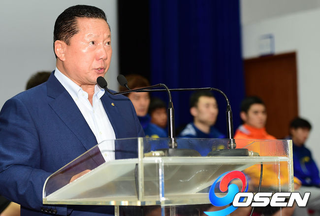 미디어데이에 참석한 김정행 대한체육회 회장이 인사말을 하고 있다.