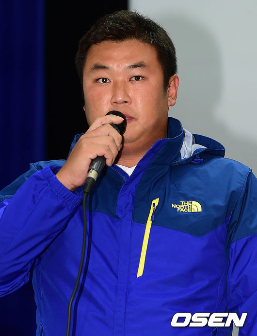 미디어데이에 참석한 양궁 오진혁이 인사말을 하고 있다.