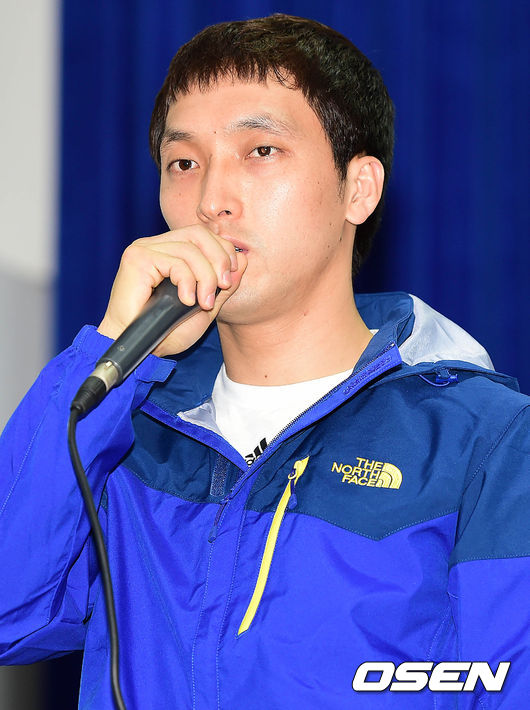 미디어데이에 참석한 펜싱 박경두가 인사말을 하고 있다.