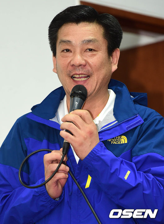 미디어데이에 참석한 핸드볼 임영철 감독이 인사말을 하고 있다.