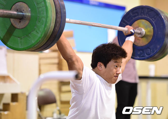 역도 사재혁이 공개 훈련을 진행하고 있다.