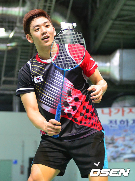 배드민턴 이용대가 공개 훈련을 진행하고 있다.