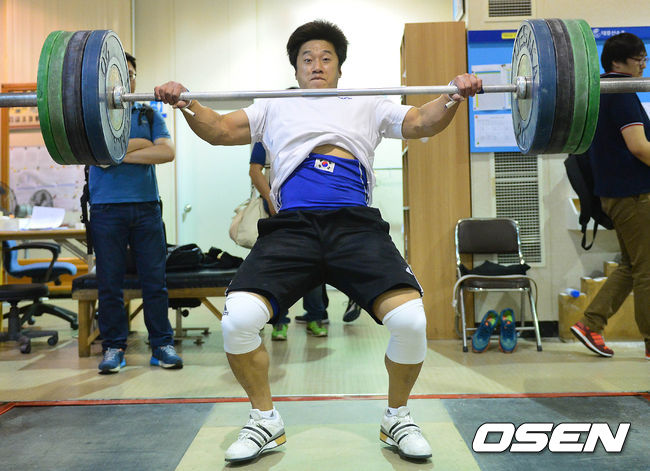 역도 사재혁이 공개 훈련을 진행하고 있다.