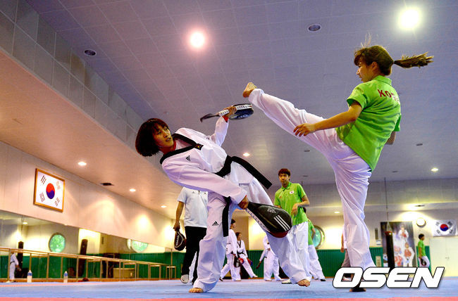 태권도 대표팀 선수들이 공개 훈련을 진행하고 있다.